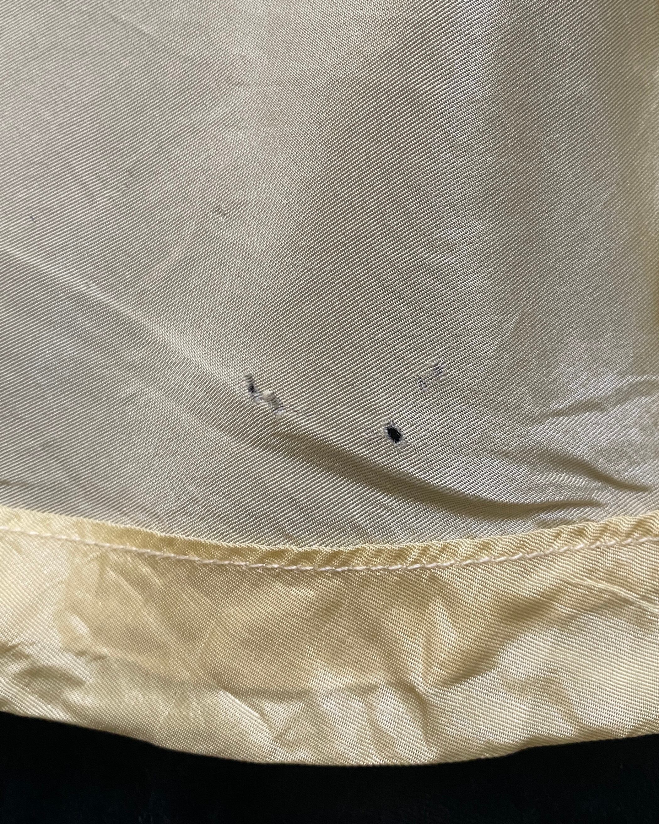 生地にキズのようなダメージや、ほつれ、穴のある箇所がございます。また元々チュール生地が縫い付けられていたような跡がございます。掲載写真最後の8枚をご確認ください。