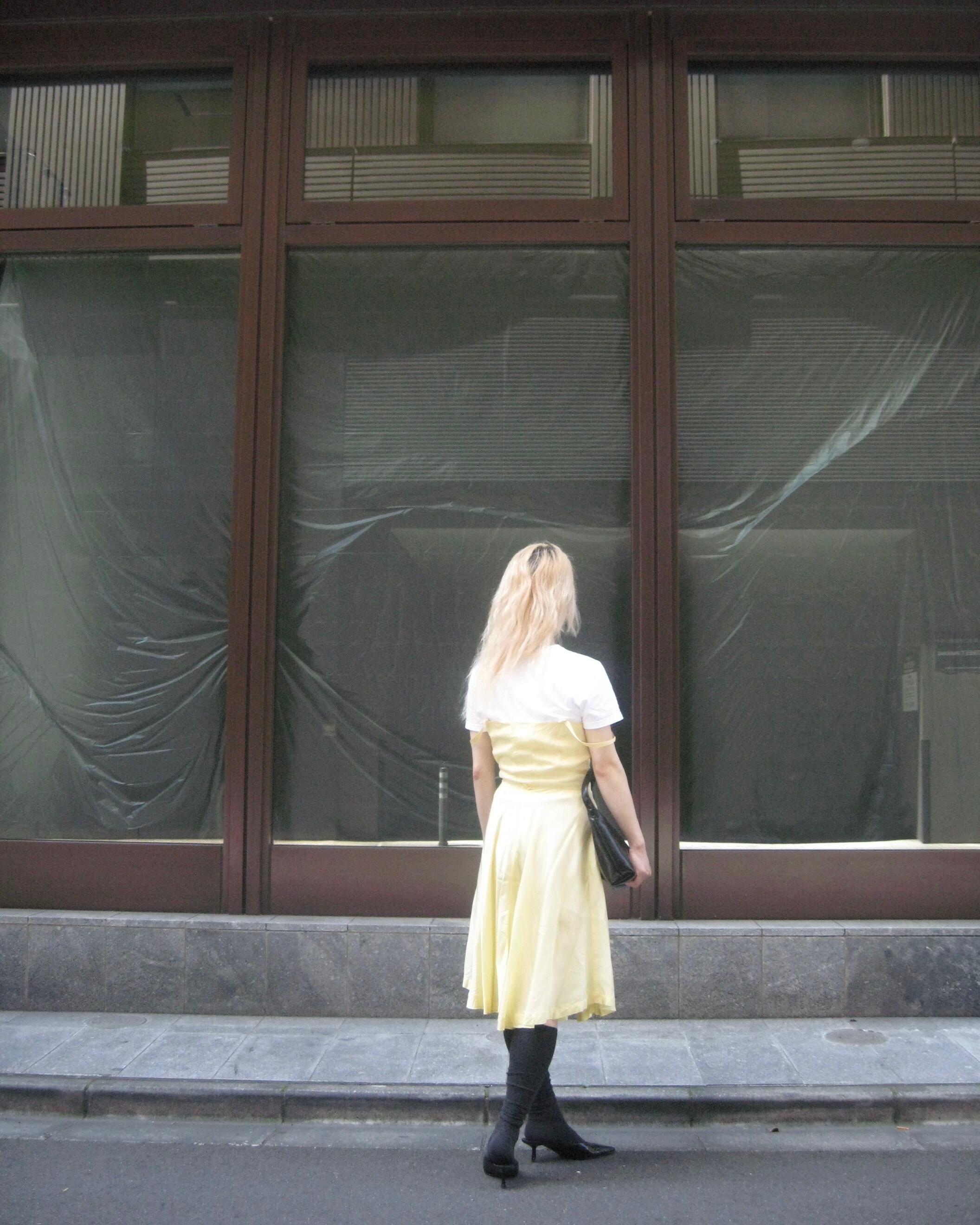 バターイエローの軽やかなタフタ生地が可愛いvintageアンダードレス。おそらくホームメイドのアイテムでインナーとして使用されていたものですが、このランジェリーライクな雰囲気が今の気分で可愛いので、さまざまアイテムとレイヤードして通年お楽しみいただきたいです。ダメージが多数ございますので、ロープライスでお出しいたします。左サイドにジップが付いています。優しくお洗濯済みです。