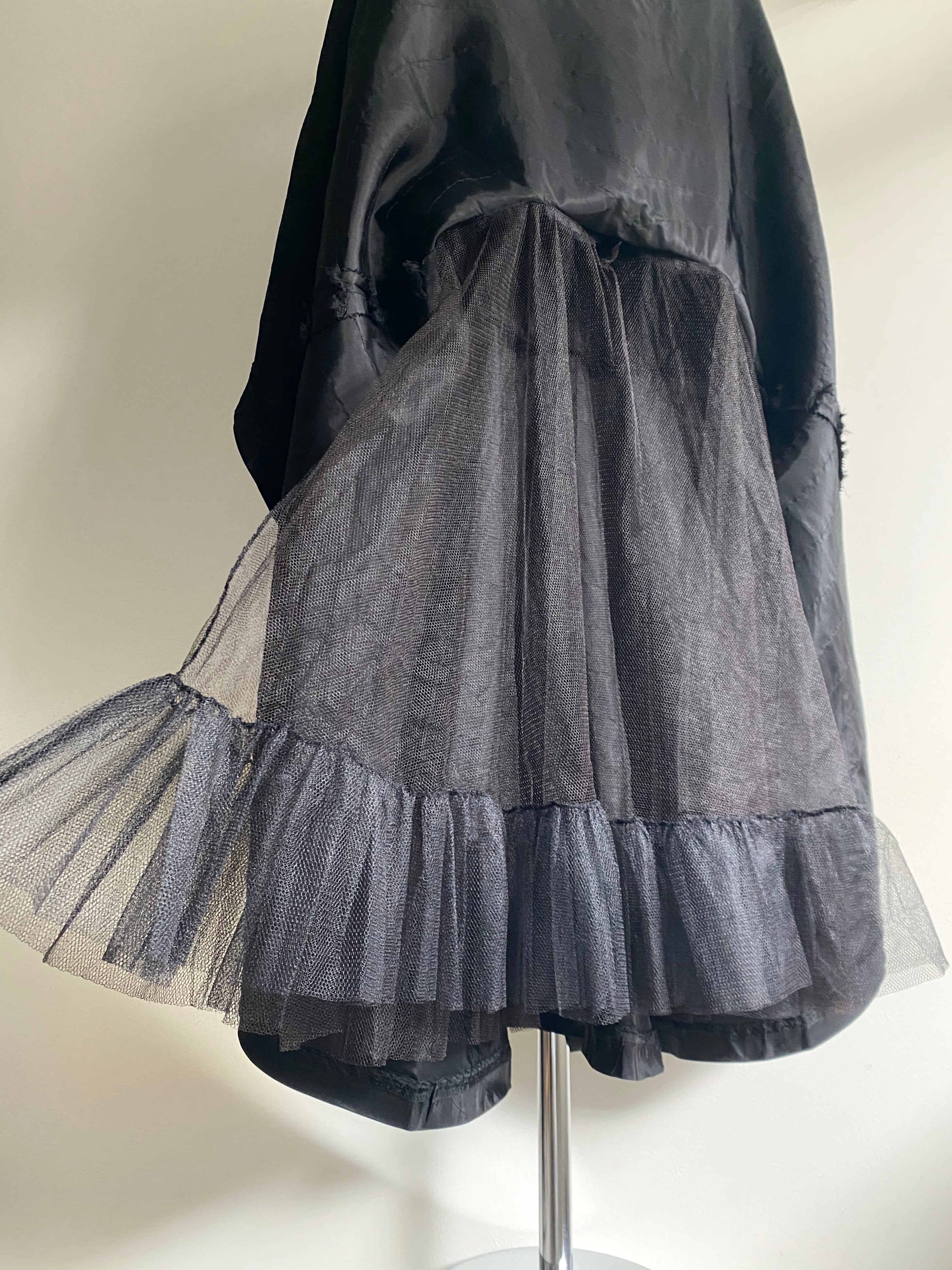 バレエウェアを彷彿とさせるフィット&フレアシルエットのvintageサーキュラードレス。トップのデザインや、スカートのしゃかしゃかとした生地感がドレッシーになり過ぎず、シティユースしやすい絶妙なバランスの一着です。着用写真では、ソフトなパニエを中に仕込んで更にシルエットを強調していますが、ハードチュールのライニングが付いているので、一枚でも美しいシルエットです。サイドジップにて開閉。優しくお洗濯済みです。